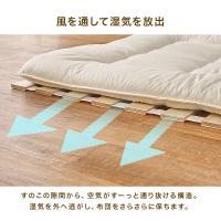 〇天然木桐材の調湿性とすのこの隙間から空気が通り抜ける構造で布団の湿気がたまりにくくなります。