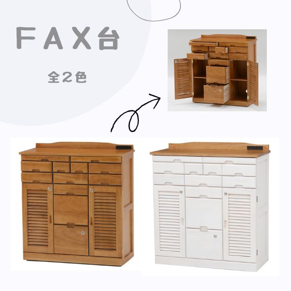 FAX台 MFX-8208 電話台 ファックス台 多段 引き出し 鍵付き 収納 インテリア キャスター付 木製