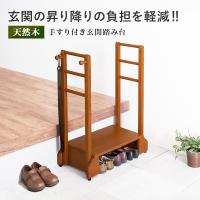 手すり付き玄関踏み台(両側手すり) VH-7938LBR-D VH-7938-D 踏み台 玄関家具 玄関台 木製 段差解消 高齢者用 子供用 手すり付き
