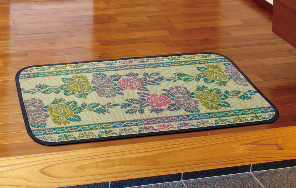 い草玄関マット(裏貼り) 涼華(すずか) 81834800 約47×70cm ドアマット フロアマット エントランス キッチン 廊下 花柄 フラワー
