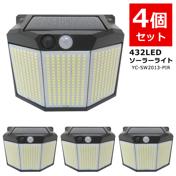 4個 432LED 人感 センサーライト 屋外 ソーラー充電 省エネ 夜間自動点灯 防犯 防災 屋内外照明 軒先 駐車場 庭先 玄関 ソーラーセンサーライト 送料無料 爆買