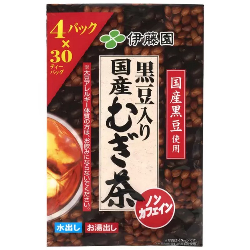 (4袋セット 伊藤園 黒豆入り国産麦茶 30袋×4パック)120袋 国産 黒豆 麦茶 ノンカフェイン 水出し お湯 お茶 健康 飲料 まとめ買い 大容量 パック 14743