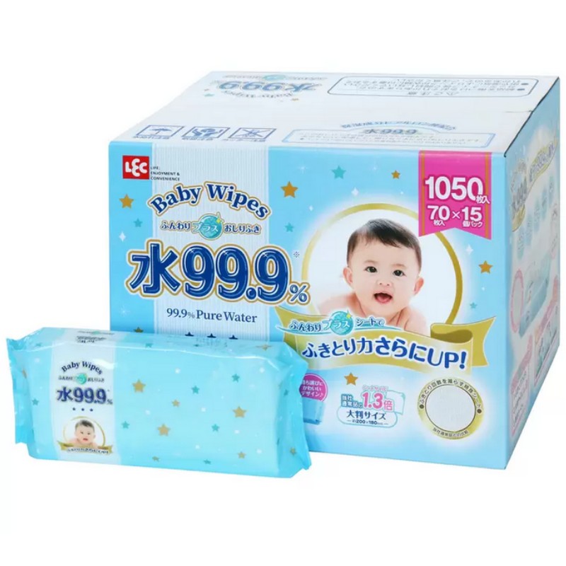 (1050枚入り レック ふんわりプラス おしりふき)LEC 水99.9% 赤ちゃん 大判 シート ベビーワイプ 70枚入り×15 アイプラス 日本製 大容量 14110