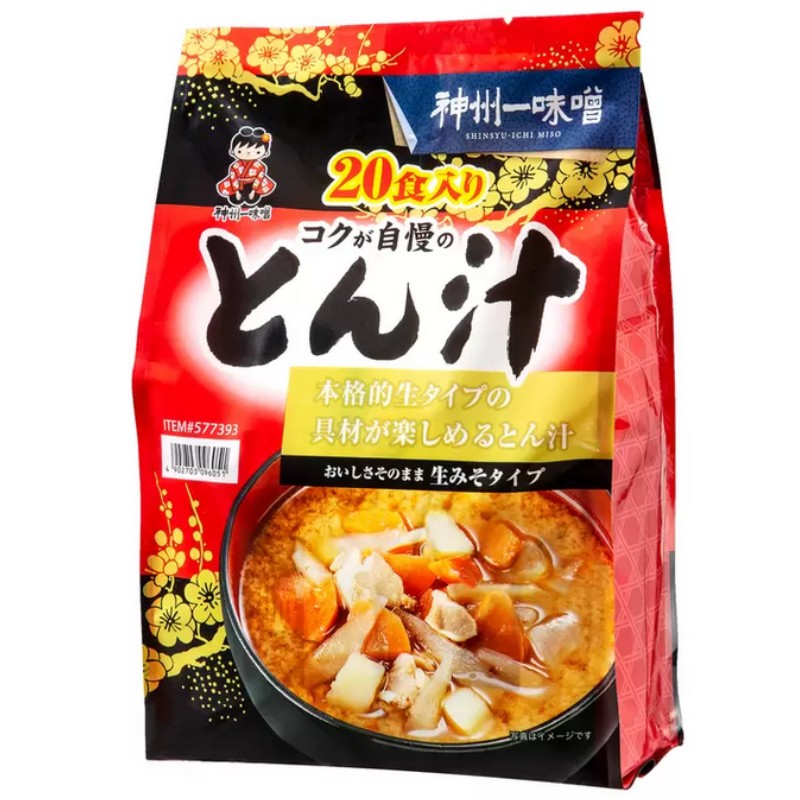 (神州一味噌 コクが自慢のとん汁 20食入)本格的生タイプ 具材が楽しめる 豚汁 インスタント みそ汁 生みそ 1180g 59g×20食 577393
