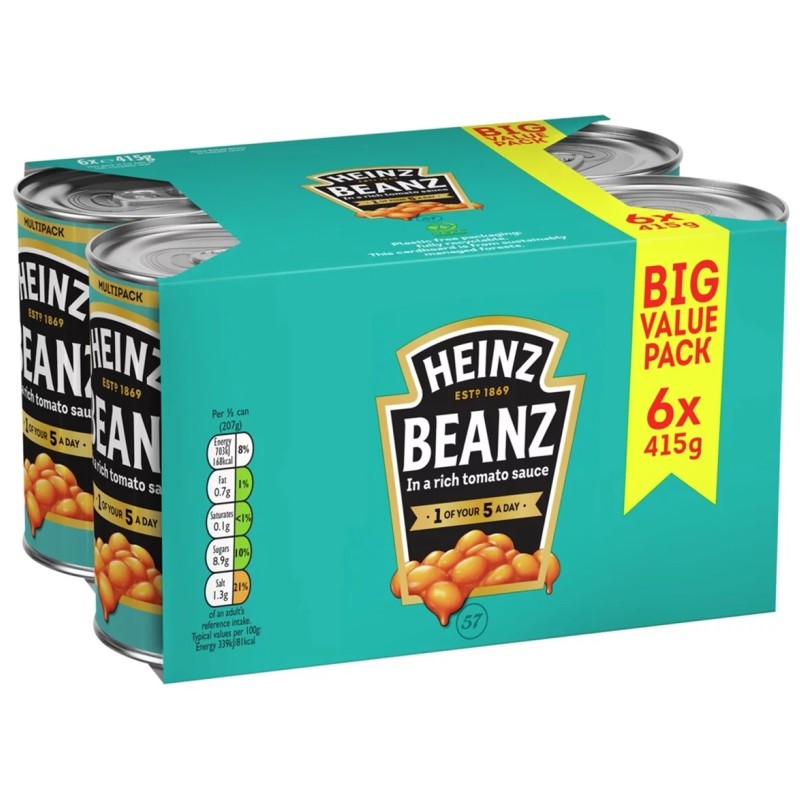 【6個セット】 ハインツ ベイクドビーンズ 415g×6個 白インゲン 豆の缶詰 6缶 トマト煮 食べきり ピザ トースト 高タンパク HEINZ 574327 -071