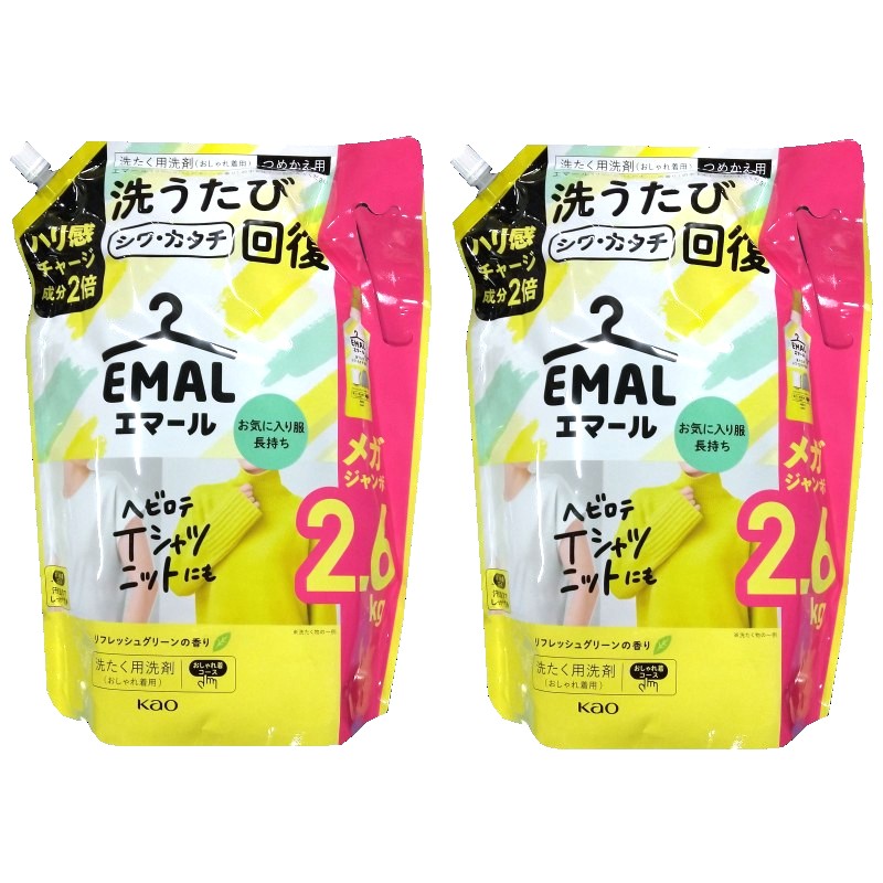 【2個セット】 花王 エマール 2.6kg×2個 つめかえ用 洗たく用洗剤 おしゃれ着用 2600g メガジャンボ サイズ リフレッシュグリーンの香り 大容量 洗剤 54999