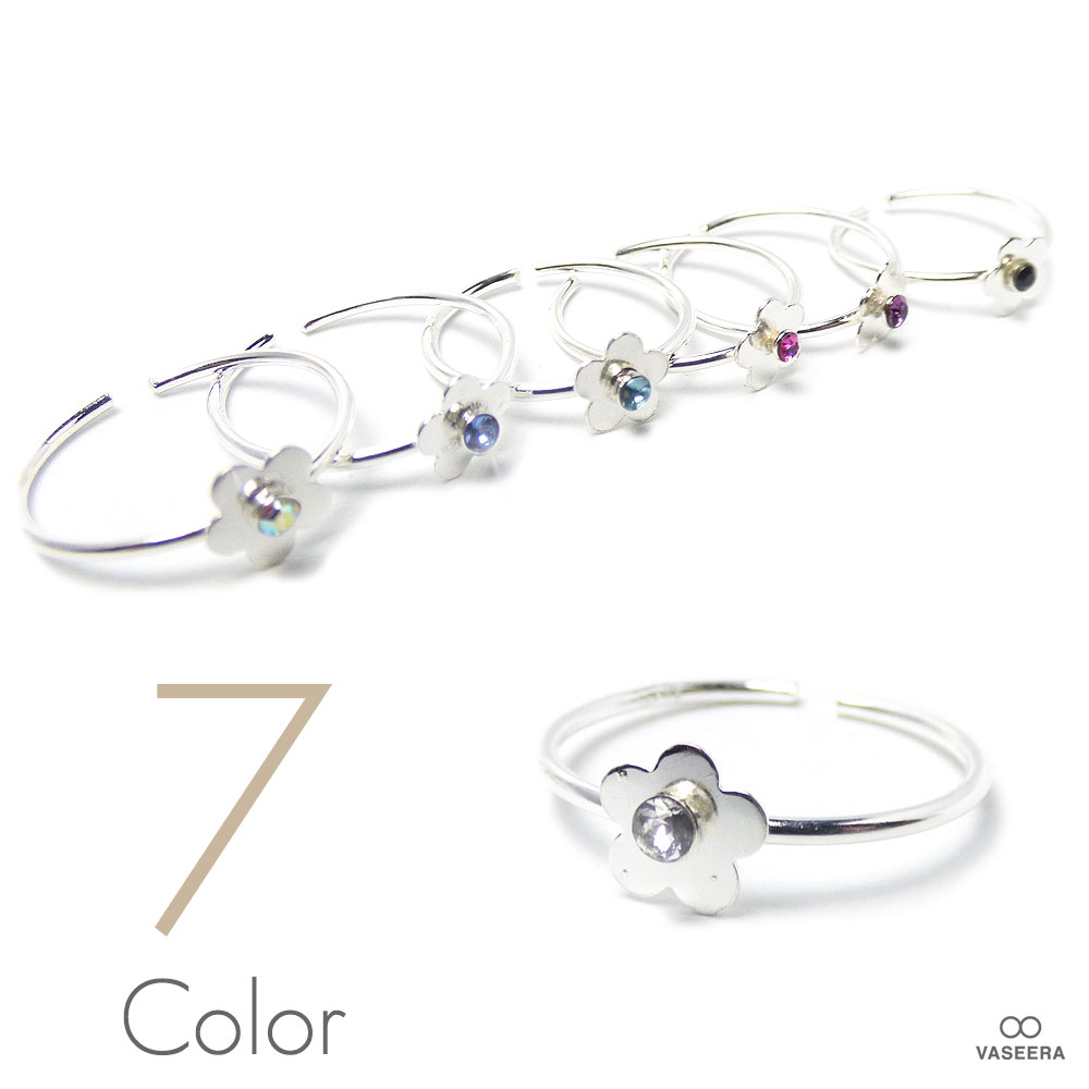 スワロフスキークリスタル デイジー(ヒナギク) シルバー925 ファランジリング(ミディリング)/トゥリング 【SILVER925/指輪】