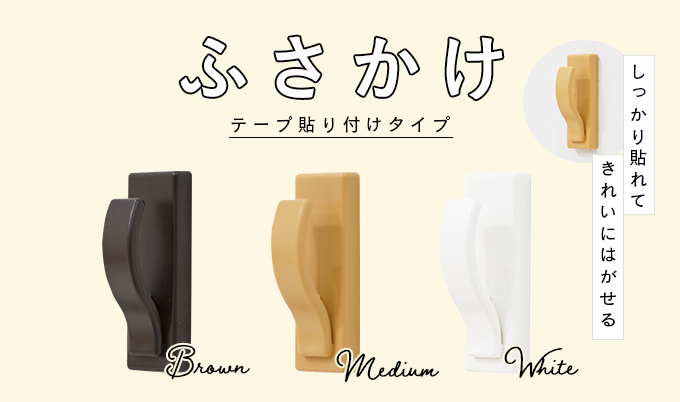 | しっかり貼れて簡単きれいに剥がせる、粘着取付タイプのふさかけ。2個入なのでカーテンの左右両側にタッセルを掛けることができます。 ホワイトの拡大 ミディアムの拡大 ブラウンの拡大 サイズ 縦:7.0cm 横:2.5cm 奥行:2.6cm 入数 2個入 色 ホワイト、ミディアム、ブラウン 耐荷重 1kg 素材 ABS 商品重量 32g 生産国 中国 取り付けられる場所 凹凸のないなめらかな平面 100gまで:しっくい、未加工板、硬い壁紙 300gまで:つや消しタイル、化粧板 1kgまで:つや出し加工タイル、金属塗装面(冷蔵庫など)、プラスチック類 使用できない場所 柔らかい壁面、布壁、土壁、砂壁、石膏ボード、表面にフッ素などで汚れ防止のコーティングのしてあるもの、曲面、凹凸のある面、直射日光の当たる窓ガラス、40℃以上の高温になる所、水のかかる所(浴室など) 商品発送の目安 2〜3営業日後の発送となります。詳細は「配送について」をご確認ください。 ご注意 ・貴重品やこわれやすいものは掛けたり下に置いたりしないでください。 その他のふさかけ |