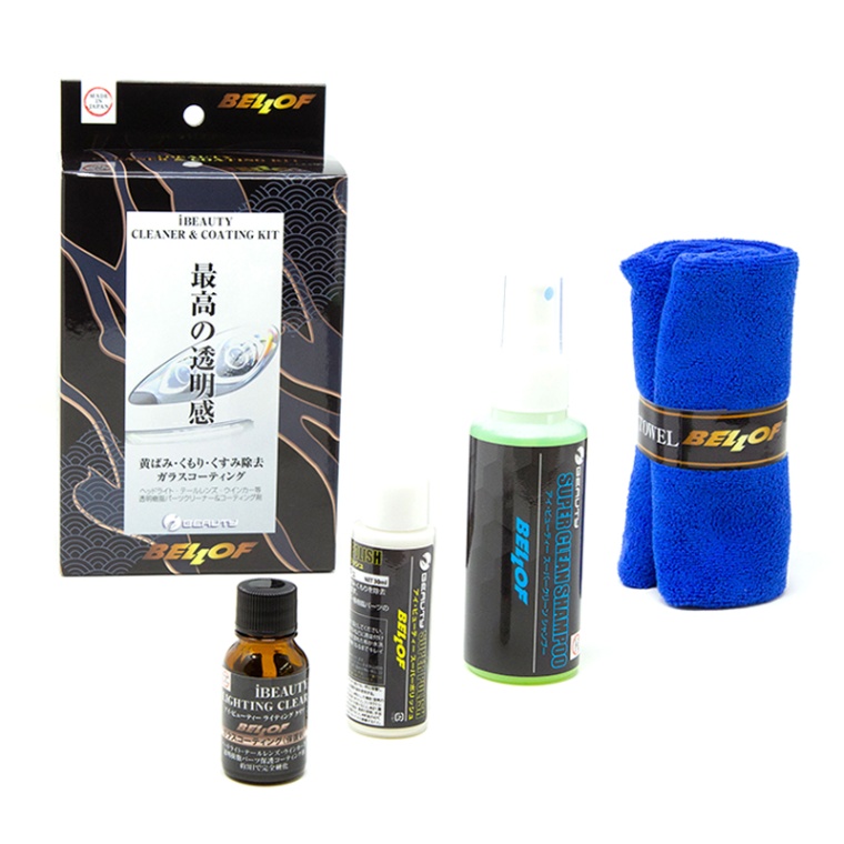 | シュッと吹きかけ、黄ばみを強力分解! くすみ・くもりもスカッと除去し、手間をかけずに最高の透明感! 車検の前に作業すれば、カンデラのアップが期待できます! 製品内容 ■スーパークリーンシャンプー 容量 100ml:シャンプー ■スーパーポリッシュ 容量 30ml:くもり・くすみ除去剤 ■ライティング クリア 容量 10ml:コーティング剤 ■マイクロファイバータオル ー使用方法ー ?あらかじめ使用箇所の表面を洗浄し、砂・ホコリなど除去してから乾燥させます。 ※レンズ以外に本剤が付着しないよう必要に応じてマスキング処理されることをお勧めします。 ※レンズ以外の箇所に付着した場合は必ず水で洗い流してください。 ?スーパークリーンシャンプーを表面に吹きかけます。 すぐに黄ばみが浮き出てきます。20秒ほど待ってから拭き取り、水で洗い流してください。 ※スーパークリーンシャンプーは研磨剤が含まれません。 ※傷によるくすみ、くもりは消せない場合があります。 ?スーパーポリッシュを付属のマイクロファイバータオルに適量つけて表面を磨いていきます。磨き終わりましたら、マイクロファイバータオルのキレイな部分で拭き上げて下さい。 ※深い傷や樹脂自体の変色やひび割れには効果がありません。 ※磨きすぎにはご注意ください。 ?ライティングクリアを良く振っ配合しているナノメタル成分を攪拌します。 使用箇所が乾燥していることを確認し、キッチンペーパーやティッシュに液剤をとり、均等に塗り広げてください。その後付属のマイクロファイバータオルで軽く拭き上げて終了です。 |