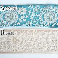 8cm幅 太幅 花柄刺繍インドチュールリボン 刺繍ポーチ お守り袋 ヘアポニーアクセサリー資材 フラワーリボン 営業日即日発送