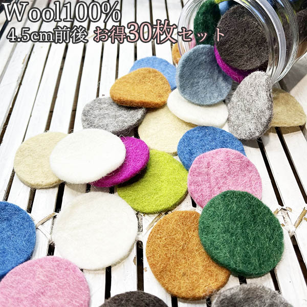 4.5cm 30個 羊毛フェルトパーツ ネパール製フェアトレード製品 ニュージーランドウール羊毛フェルトシート デコレーション資材おままごと かずあそび色覚え資材