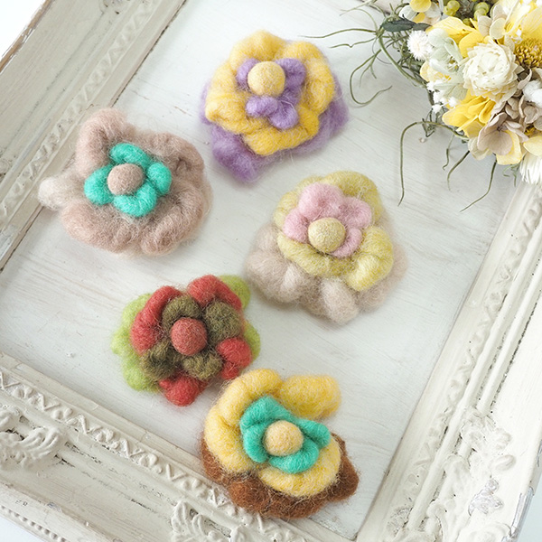 お花コサージュ ふわふわ羊毛アクセサリー フェアトレード製品 フェルトコサージュ フェルトお花パーツ ウールニードルフェルト 営業日即日発送