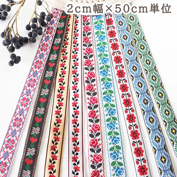 2cm幅 ウクライナ刺繍リボン 東欧北欧柄チロルテープ フラワーテープ 刺繍テープ 伝統工芸刺繍柄 チロリアンテープフラワー 営業日即日発送