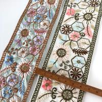 6cm幅 太幅インド刺繍リボン 花柄幾何学模様 幅広リボンブレード 和装ヘアアレンジ小物資材パーツ販売 営業日即日発送