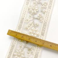 約4.5cm幅 パール付きチュールリボンレース インド刺繍リボン オケージョン用ヘアアクセサリー資材 ケミカルレース 営業日即日発送