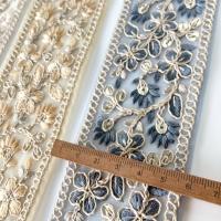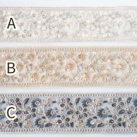 5.5cm幅 小花柄 スパンコール 刺繍リボン インドリボン メッシュリボン ボタニカル柄 営業日即日発送
