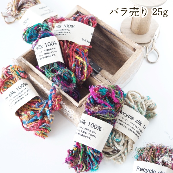 リサイクルシルク25g 手芸用毛糸 指編み ネパール毛糸 シルクヤーン ラッピングリボン インテリア ファンシーヤーン 営業日即日発送