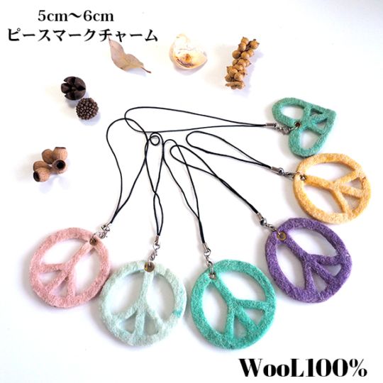 羊毛ピースマークストラップ ウール100% ハートモチーフ ネパール製 フェアトレード雑貨 キーホルダー 羊毛小物 キーチャーム バックチャーム スマホストラップ