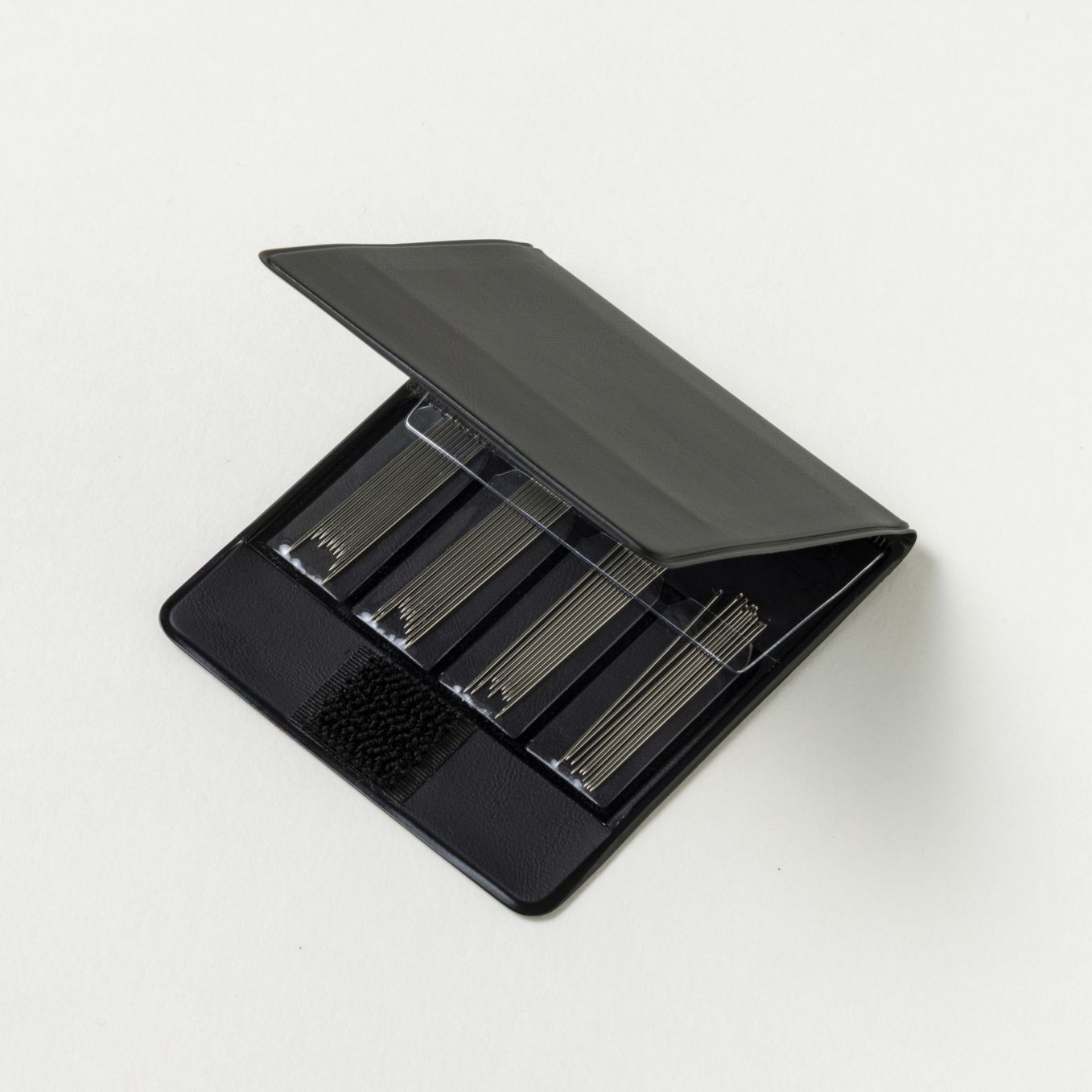 ケース内部に予備の針や、一時保管に便利なサブポケットを備えています。