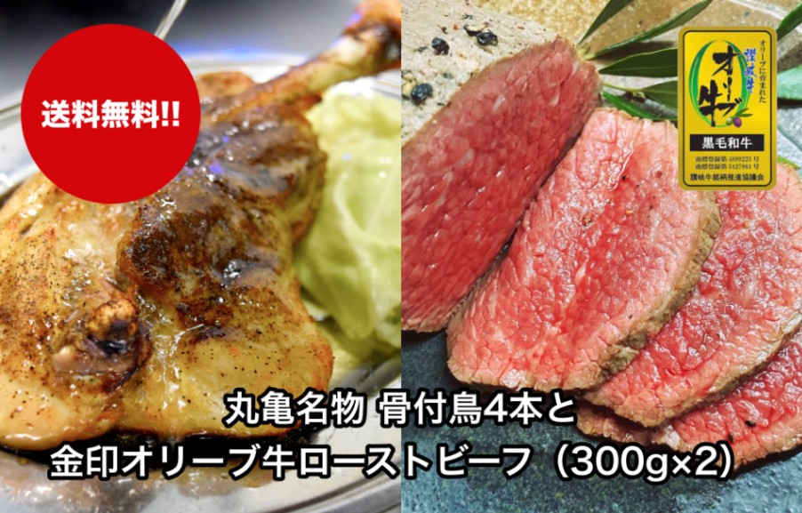 | 丸亀名物 骨付鳥と金印オリーブ牛ローストビーフセット(4人前)(黒毛和牛A4・A5) 特別な日の食卓を華やかにする骨付鳥の足とローストビーフをセットにしています。肉匠がこだわり引き継いできた本物の味をお届けします。 ローストビーフ1個に、ソースも1個付いています。 金印のオリーブ牛のローストビーフ 讃岐のオリーブ牛(A5ランク)にオリーブ塩などの複数のハーブでじっくり焼き上げた、肉匠自慢の最高級ローストビーフです。是非お試しください。 美味しさそのまま急速冷凍で真空パックにしています。 丸亀名物「骨付鳥ひな」 骨付鳥とは、骨付きの鶏もも肉にニンニクのきいたスパイシーな味をつけてオーブンなどでジューシーに焼き上げたものです。 「ひな(わか)」はふっくら柔らかい肉質で食べやすく、女性やお子様に人気です。 香川県内ではクリスマスの定番としても親しまれており、そのパンチの効いた味わいで全国区の知名度を誇るまでに成長しました。 ローストビーフ製造工程 1. A5ランクのオリーブ牛の適度な霜降りのもも肉を使用し、オリーブ塩、ハーブ、ニンニク、ブラックパッパーで作ります。 2. すりおろしたニンニク、オリーブ塩、ハーブ、ブラックペッパーを全体にすり込み時間を置いて馴染ませます。 3. オリーブオイルをたっぷりかけます。 4. 特殊なオーブンでじっくり柔らかく焼き上げます。 5. 美味しさそのまま急速冷凍で真空パックにしています。 香川丸亀名物「骨付鳥」 骨付鳥とは、骨付きの鶏もも肉にニンニクのきいたスパイシーな味をつけてオーブンなどでジューシーに焼き上げたものです。親どりとひな(わか)どりがあり、「おや」はしっかりとした歯ごたえで噛めば噛むほどに鶏肉本来の風味が口の中に広がる通好みの逸品です。 「ひな(わか)」はふっくら柔らかい肉質で食べやすく、女性やお子様に人気です。 香川県内ではクリスマスの定番としても親しまれており、そのパンチの効いた味わいで全国区の知名度を誇るまでに成長しました。 <骨付鳥の粋な食べ方> 出来たてアツアツに豪快にかぶりつくのが一番美味しい食べ方です。 さらに、お皿に落ちた肉汁にキャベツをつけてみましょう。 POINT 01 自然豊かな農場で平飼いでのびのび育った鶏肉を使用しており、身が引き締まっていて美味しい。 限りなく自然に近い環境と飼育法が、健康で優れた肉質の食鳥を生み出す要因となっています。 POINT 02 ふっくらジューシーに焼き上げることのできる専用の特殊なオーブンを使用しています。 POINT 03 焼き立てを瞬間冷凍することで、美味しさそのままお届け致します。 POINT 04 50年前から続く骨付鳥の味付けを守り抜き、愛されてきた老舗の味。 POINT 05 ミネラルたっぷりの瀬戸内の藻塩を使用し、無添加にこだわっています。 香川を代表する名物料理は、お世話になった方やご友人にも喜ばれること間違いなし ! POINT 06 贈り物に最適な高級感のある黒箱に帯掛けでお届けします。1万円以上の購入で、送料無料 ! のし、ギフトラッピングも無料で致します。 POINT 07 会員登録で初回から使えるポイントがもらえます! その後も購入額に応じてポイントが貯まります。 |