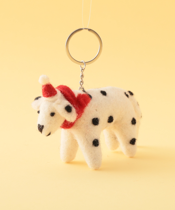 ハンドメイドで1点1点表情が違う、フェルト素材でつくられたハンドメイドのキーホルダーです。ドット柄が可愛いサンタ帽を被ったダルメシアンモチーフです。商品番号A25WNX123WH生産地ネパール素材フェルトサイズ12×H8.5×D4cmその他注意事項こちらの商品はハンドメイドのため、個体によって仕上がりが若干異なります。色むらや表面の細かな傷等がある場合がございます。 摩擦や汗・雨などで濡れた場合に色移りすることがありますので、十分ご注意ください。
