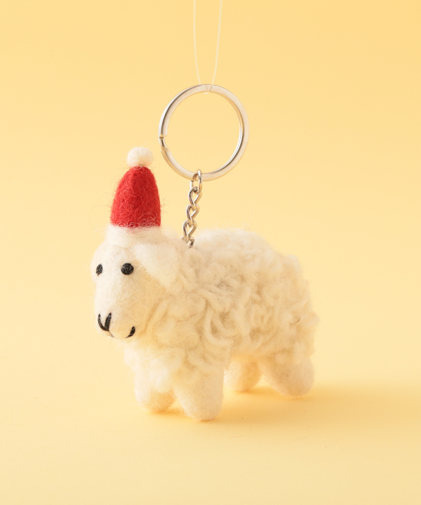 ハンドメイドで1点1点表情が違う、フェルト素材でつくられたハンドメイドのキーホルダーです。サンタ帽を被ったヒツジが可愛い仕上りです。商品番号A25WNX124WH生産地ネパール素材フェルトサイズ8×H8×D3.5cmその他注意事項こちらの商品はハンドメイドのため、個体によって仕上がりが若干異なります。色むらや表面の細かな傷等がある場合がございます。 摩擦や汗・雨などで濡れた場合に色移りすることがありますので、十分ご注意ください。