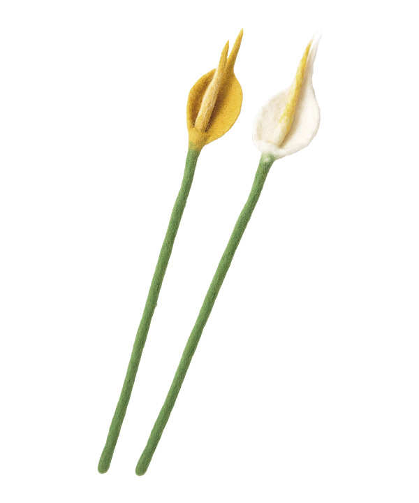 ほっこりとした温かみのあるフェルト素材で作ったずっと咲き続けるフラワー&グリーンシリーズ。
