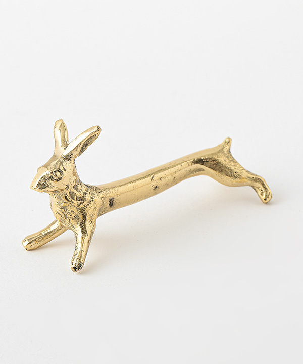 ウサギをかたどった、アルミ製のカトラリーレストです。手のひらサイズの愛らしいフォルムは、食卓にやさしいアクセントを添えるだけでなく、インテリアの一部としてもお楽しみいただけます。ずっしりとした質感のアルミ素材は、シンプルでどこか温かみのある佇まい。日常の食事シーンにさりげない癒しを添えてくれます。使わないときは窓辺や棚に並べて飾っても素敵。ギフトにもおすすめのアイテムです。 商品番号 M36-2820 生産地 インド 素材 アルミニウム サイズ 幅8.5×奥行3×高さ4cm その他 注意事項