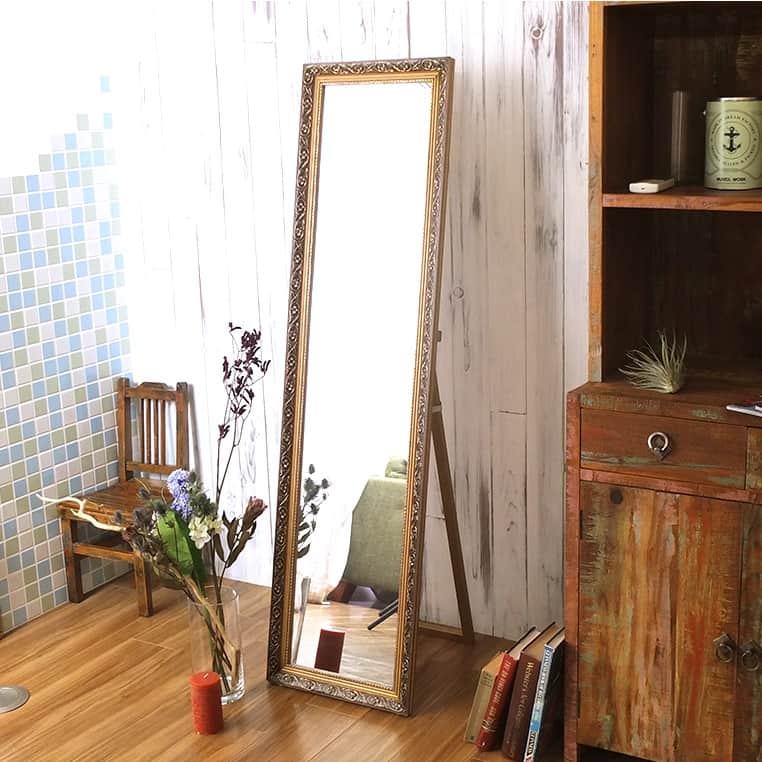 緻密な装飾がお部屋の雰囲気をぐっと上げるアンティークミラー。