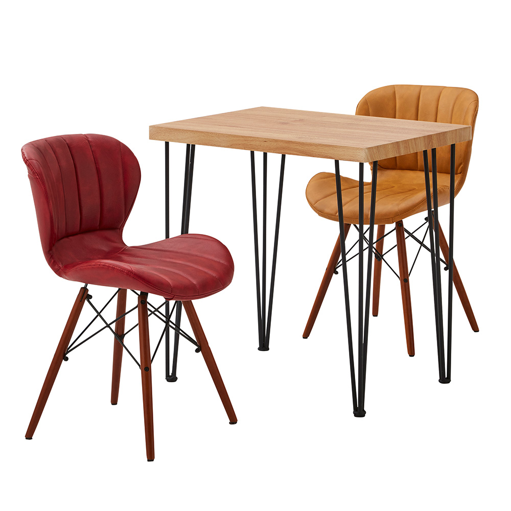 | 【商品説明】 レザー調ダイニングチェア2脚と75cm幅ヴィンテージテーブルの3点セット! チェアは3色から1色もしくは2色、テーブルは2色からお選びください。 チェアは、ブラウンの脚部と使い込んだ革のようなPU生地を張込んだ成形合板ベースの座面が、 レトロな雰囲気を醸し出します。 ヴィンテージ調のダイニングテーブルともマッチします。 テーブルは、天板に水や汚れに強いPVCを使用。 触感にこだわった木目を側面まで施し、無垢材のような重厚感を持たせています。 1人暮らしや2人暮らしの人にピッタリのダイニングセットです。 【サイズ】 【商品サイズ】 チェア(1脚):W46×D45×74(SH44)cm テーブル:W75×D56×H73cm 【商品重量】 チェア(1脚):5.1kg テーブル:8.2kg 【梱包サイズ】 チェア:W50.5×D50.5×H52cm テーブル:W79×D58.5×H16cm 【梱包重量】 チェア:6.2kg テーブル:10kg 【素材】 【チェア】 張地:ポリウレタン 脚部ビーチ無垢材、スチール、ラッカー塗装 【テーブル】 スチール、MDF、PVC 【その他】 組み立て時間 チェア:10分 テーブル:15分 ■この商品は送料無料です(※ただし北海道・沖縄・離島は別途送料お見積します。ご注文前にお問い合わせ下さい。) |