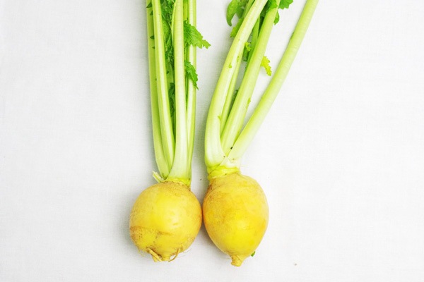 その名の通り、鮮やかな黄金色の皮が特徴で、見た目も味わいも特別な蕪です。柔らかくジューシーな食感とほんのり甘い風味が、料理を一段と引き立てます。