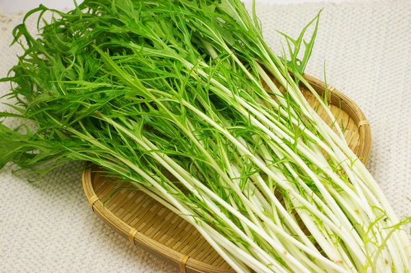 水菜は、京野菜の一つで、食べるとシャキシャキした歯切れのよさが抜群。肉の臭みを消す効果があるため肉を使った鍋料理に良く使われます。シャキシャキとした食感を生かしてサラダにして食べても美味しいです。