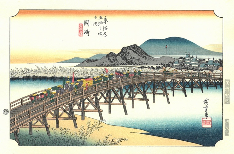 岡崎 東海道五十三次 歌川広重 芸艸堂版木版画-The Hiroshige 53 stations of Tokaido