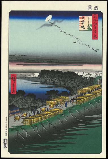 | 歌川広重生誕二百年記念 東京伝統木版画工芸協会復刻事業 江戸期に華開いた浮世絵は、世界に誇る 日本の文化であるとともに、日本独自の 木版画の技術による手仕事が生み出した ものです。 しかしながら、そこに関わる人達の高齢化 後継者不足が深刻となっています。 このような情況に鑑み、滅びゆく技術の 再興と伝承を目指し、今回の復刻事業を 東京都伝統木版画工芸協会は行って います。 復刻にあたり、 文化庁、東京都 ポーラ伝統文化振興財団、アダチ伝統 木版画技術保存財団、協会員の版元からの 支援を受けています。 本作品は 東京都伝統木版画工芸協会が 制作した木版画です。協会員でもある 当社は許可の元 販売しています。 復刻監修:奥山義人 協力:江戸東京博物館 助成:東京都 ポーラ伝統文化振興財団 芸術文化振興基金 ■原版画:江戸東京博物館所蔵の 初摺作品「名所江戸百景」(全120図) ■絵寸:天地340×左右220ミリ (初摺作品と同寸) 版画欄外に「原画は江戸東京博物館蔵」 を銘記 ■版木・用紙:桜材・越前生漉奉書紙 ■彫・摺:伝承している彫り・摺りの道具 を使用、原画に使用されている絵具を使い 木版技術によって製作。 ■平成10年より復刻事業を開始、平成16年 には全120図を完成 ■6年余の復刻事業を綴った 「江戸百景復刻物語」はこちら。 ■備考 本品はシートのみの価格です。 額装をご希望の方は、「5767N大衣」を ご覧ください。 The Hiroshige 100 Famous Views of Edo The Hiroshige 100 Famous Views of Edo is an article of the Mokuhan print association where UNSODO joins. ■The print association is very good. ■The paper is good quality. ■A woodcut / paper: Cherrywood / Echizen making pure Japanese paper . ■The same size(the original). "The original picture possesses Edo Tokyo museum" in a print margin. ■The carving and the printing is faithful to the original |