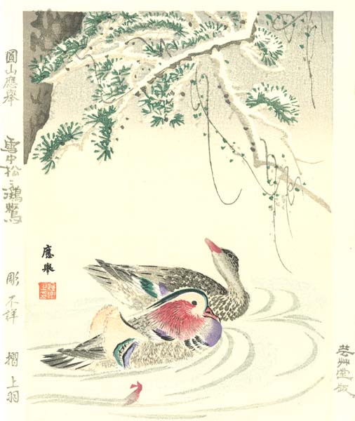 円山応挙 木版画 雪中松に鴛鴦(おしどり) Okyo Maruyama Woodcut