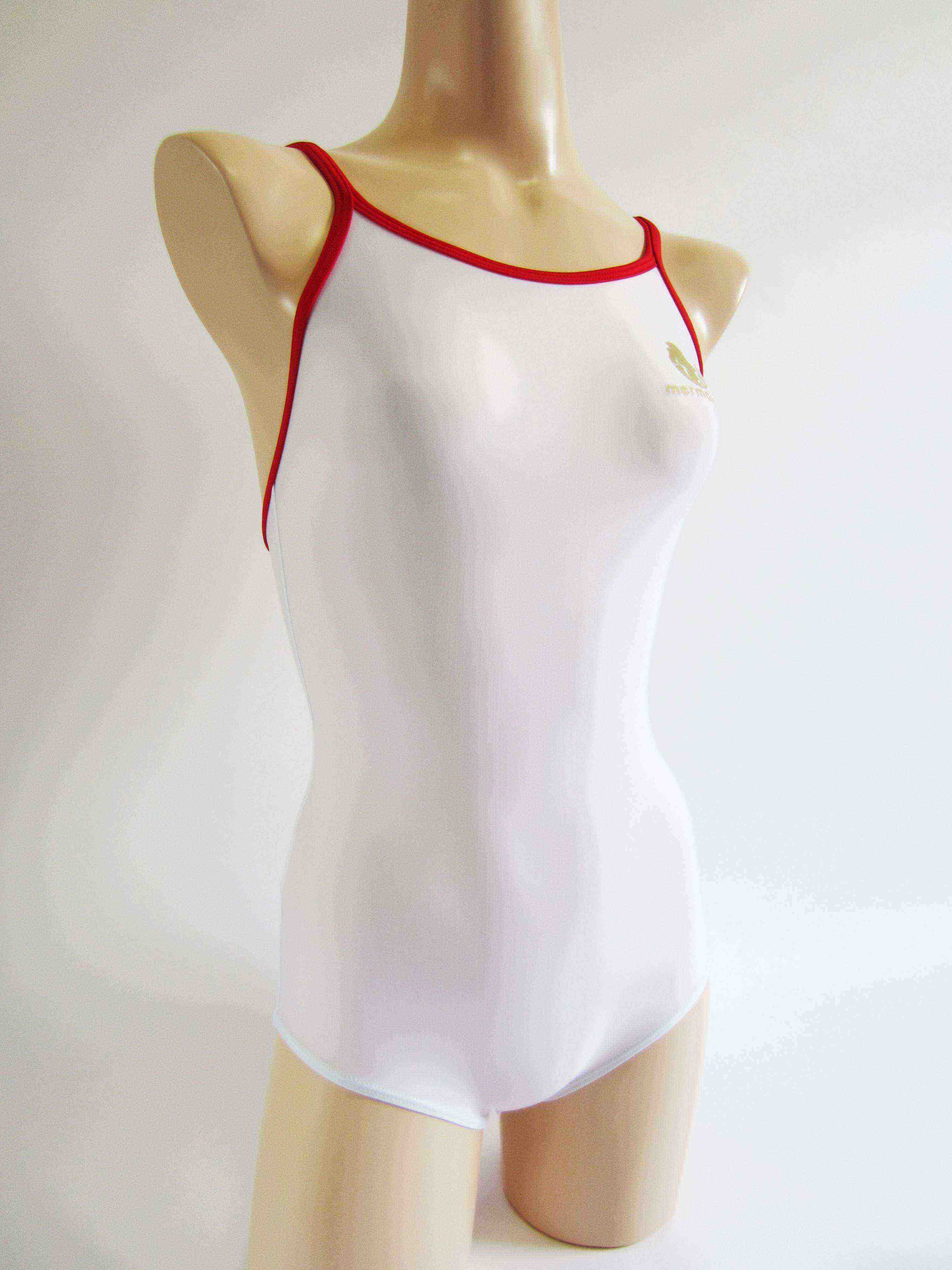 | 女性用スクール水着新品未使用品 当社オリジナル製品(日本製) Mermaidia(マーメイディア) カラー:ホワイト 肩紐:チェリー ロゴ:ゴールド このラインナップは世界でも類を見ないハイテク繊維産業国・日本の中でも、競泳水着専用生地の中でクオリティが高いものを厳選し、当社が企画をし、日本の競泳水着メーカーが製造を依頼する縫製工場に委託・製造して完成した自信作です。 日本製の特徴である生地やデザイン、縫製に至る質の高さもさることながら、既存の水着にはない「華やかさ」と「かわいさ」を追求しました。 カッティングは、プールの授業で使用されることが多いベーシックなスクール水着タイプ(ローレグ)。 素材に当社オリジナルマテリアル(ポリエステル82%、ポリウレタン18% : 最高級品質の耐塩素仕様の競泳水着用特殊生地。繊細で光沢があり薄いのが特徴)を仕様していますので、水につけると透けます。写真では透け具合の参考にタグを差し込んであります。胸・股部分ともに内布(クロッチ)は付いておりません(当サイト内で販売をしておりますインナーの着用をお勧めいたします)。尚、吊りカップフック掛けはついていない点、予めご了承ください。 この生地は薄く、ストレッチ素材であるポリウレタンが織り込まれていますので、身体に柔軟にフィットします。水を吸いにくいポリエステル繊維のため水中フィット性も十分。ハイグレードなカオチン染料を採用しているため色鮮やかで、耐光堅牢度にもすぐれ、屋外でも簡単に退色することはありません。 生地感はasics製のハイドロCDに近いです。 Mermaidia black swimsuit for woman. Lady’s basic school swimsuit Unused new product (wrapped in package with tag) Swim Wear Shop Inoue products (made in Japan) Color:white , Shoulder strap:cherry , Logo:white , Cutting:low leg cut This lineup is made of the highest quality textile made in Japan, one of the leading counties in high-tech textile industry. After taking your order, we carefully picked racing specific fabric and manufactured through professional sewing company We integrated highest quality fabric, sophisticated design and meticulous sewing together with ‘flamboyancy’ and ‘cuteness’ that cannot normally be found in existing swimsuits. Mermaidia original cutting is basic school swimsuit type that commonly used for Japan’s school swimming class (low leg cut). The fabric uses our original material (82% polyester, 18% polyurethane – the highest quality durable fabric specifically made for racing). It may look transparent when wet. We put the photo for your reference on the transparency. Chest and crotch part don’t have inner pad. (We recommend wearing innerwear that are also available on our web site) The swimsuit more flexibly fits human body. Water absorption made harder with polyester and this gives maximum aquatic fit. High quality dye increases vividness and color fastness and would last longer outdoors. The touch of the fabric is closer to that of ASICS Hydro CD. Compared to ASICS Hydro CD with respect to elasticity, it might feel little tighter because of less polyurethane. You need to consider your lower body size not the upper body in size selection. We recommend 1 size bigger than your normal pants size. (The same size made by other companies may be smaller). Slender person should choose 1 size bigger. A person with little chubby thighs should choose 2 bigger. (単位:cm)生地の伸縮率(ポリウレタン比率)の関係でハイドロCD等のポリウレタン30%の製品から比べると着用時にきつい感じがします。サイズ選びのポイントは上半身ではなく、下半身のサイズです。パンツ(ズボン)がMサイズの方はLサイズを、Lサイズの方はOサイズといった、パンツのワンサイズ大きめを選ばれることをお勧めします。感覚でいうと、細身の方は1サイズ、少しぽっちゃり・ "もも" が少しぽっちゃりの方は2サイズ大き目を選ぶこと、が目安です。です。 |