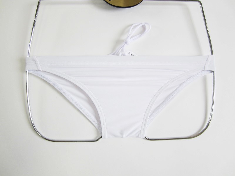 | 【極パン®きょくぱん】(競パン,競泳水着) 新品未使用品 当社オリジナル製品(日本製) Heaven&Heaven ®(ヘブンアンドヘブン、ヘブヘブ) カラー:ホワイト(透けにくい仕様) ロゴ:なし スピンドル(腰のひも):ホワイト インナー:なし サイズ:3S、SS、S、M、L、XO 写真の6番目と7番目は濡れた状態です。 サイドの最も狭くなる幅は、平置き実寸 (個々の製品により±0.3cm程度の違いがあることがあります) 3S 2.5cm SS 2.5cm S 2.5cm M 2.5cm L 2.5cm XO 2.5cm なかなかありそうでない白の競パン。 当店の定番カラーです。 素材に当社オリジナルマテリアル(ポリエステル80%、ポリウレタン20%: 最高級品質の耐塩素仕様の競泳水着用特殊生地。繊細で光沢があり薄いのが特徴)を使用していますので、水につけても透けにくいです。体に柔軟にフィット。水中でのフィット性も十分です。 ハイグレードなカオチン染料を採用しているため色鮮やかで、 耐光堅牢度にも優れ、屋外でも簡単に退色することはありません。 生地感が緻密でなめらかです。少ししっとり感じるくらいです。この透けにくいバージョンの生地には、生地をよりなめらかにするためにセラミックが配合されています。 写真では透け具合の参考にタグを差し込んであります。股部分に内布(クロッチ)は付いておりません。 お客様からご意見をお聞かせいただき、いくつものパーツと工程が必要な水着製作で依頼先の会社様と何度も打ち合わせと試作を繰り返して作り上げました。 すべてのパーツと工程は、世界に誇る日本の競泳水着メーカーが利用・提携する会社に依頼し、無理をいって作りこんでいただきました。 極パンのどのパーツ・工程をとっても国内大手の競泳水着メーカーと同じ委託会社ですので、品質はデパート等で手にする水着と同じレベルです。 また多くのお客様がご希望された横幅2.5cmを実現。パーツや工程のクオリティを落とさずに、割安なプライスでご提供させていただくことができました。 よろしければ、一度手に取ってお試しいただけますと幸いです。 生地の伸縮率(ポリウレタン比率)の関係でハイドロCD等のポリウレタン30%の製品と比べるときつい感じがします。 例えば、SかMを迷われているときはMにするか、ワンサイズ大きめを選ばれると無難です。 競パンの適正サイズの選び方 (サイズに悩んでいる方はご一読ください) ➣適正サイズの選び方「 競パン(男性用競泳水着) |