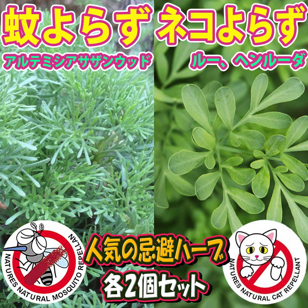 | 人気の蚊よらずとネコよらずのハーブ苗セットです。 【蚊よらずの特徴】 柔らかい葉はアブサンとレモンの香りがします。 ポプリ、リースや寄せ植えにも適しています。 香りが強く、乾燥葉を衣類の防虫、蚊やハエなどの虫除けにもなると言われています。 ガーデニングの敵、蚊に効果的です。 虫除けのハーブとして有名なワームウッドの1種、サザンウッドです。 非常に育てやすいハーブで、オーストラリアでは蚊が嫌がる植物として有名です。 アブサンとレモンのかおりがあります。細く青みがかったシルバーリーフを肌にこすりつけたり、切り口から出る樹液を使います。 また、蚊以外の不快害虫にも効果があるといわれています。 その他、ハーブバス、ポプリやリースにも利用します。 非常に強く、高温多湿にも耐え、多年草で耐寒性もあります。 【蚊よらずの育て方】 生育旺盛で日当たりの良い所を好みます。 排水性の良い土で育てて下さい。 強健で育てやすいですが、水はけが悪いと根腐れを起こします。 成長を見ながら緩効性肥料などを与えてください。 基本、農薬は使わなくても大丈夫です。 【ネコよらずの特徴】 柑橘系の匂いで野良ネコを寄せ付けません。 ヨーロッパ南東部原産のミカン科ヘンルーダ属の植物で、学名はRuta graveolens。 耐寒性もある比較的丈夫なハーブです。 柑橘系の匂いがし、オーストラリアではネコが嫌がる植物として有名です。 ネコの侵入を防ぎたい場所に植え込んだり、鉢植えを置いたりします。 樹液に直接触れると肌荒れを起こすこともあるので注意してください。 利用部分は葉の部分になります。 【ネコよらずの育て方】 日当たりの良い所を好みます。 鉢でも露地植えでもOKですが、肥沃で排水性の良い土で育てて下さい。 ★ご注意:ハーブを使用した虫よけなどについて★ 自然の植物の発する匂い等の成分による効果ですので、植物の生育状態や植えられる環境、害虫の種類や強さによってはあまり結果が出ない場合もあります。 【お読みください】 掲載苗画像はお届けする苗のイメージです。背丈・株張りなどは出荷タイミングや毎年の気象などで、小さくなったり大きくなったりします。ハーブ苗の大きさの大小はその後の生育には大きく影響しません。弊社基準に達した苗のみ出荷しております。 植物アレルギーのある方は、栽培にも利用にも注意が必要です。収穫までの期間はあくまで目安です。 生長や開花は毎年の気候や栽培地域・栽培環境・施肥量などにより変化します。 ご了承ください。寒い時期は葉が傷んでいる場合がありますが、その後の生育には影響ありません。植物には個体差があり、ショップ画像とイメージが異なる場合があります。植物アレルギーのある方は、栽培にも利用にも注意が必要です。ご了承ください。 【検索キーワード】 蚊よらず苗 虫除けの苗 虫除けのハーブ 蚊よらずの苗 虫よけハーブ 天然ハーブ 忌避 苗 herb ハーブ ハーブ苗 ガーデニング ハーブ 鑑賞 栽培 庭園菜園 ギフト プレゼント ベランダ 香り リラックス 芝生 花壇 アルテメシア サザンウッド 虫除け ワームウッド 天然の防虫剤 害虫対策 蚊連草 カレンソウ かれんそう 虫対策 通販 販売店 猫よけハーブ ねこよけ ネコ対策 猫対策 忌避 ルー ヘンルーダ ガーデニング ベランダ栽培 のら猫 鑑賞 栽培 庭園菜園 ギフト プレゼント 贈り物 花壇 柑橘系 野良猫 対策 耐寒性 丈夫 Ruta graveolens 耐寒性 虫対策 通販 販売店 ルーの苗 ヘンルーダの苗 |