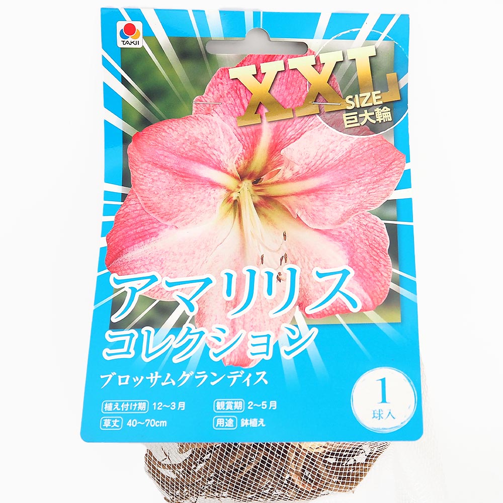 | 【品種特徴】 手のひらサイズを超える巨大な花を咲かせる、特大XXLサイズの球根です。 「ブロッサムグランディス」は、桜の花を思わせるような優しいピンクと純白のコントラストが大変美しい品種です。 XXLサイズの特大球根なので栄養がたっぷり蓄えられており、太い花茎が伸びて見ごたえのある豪華な花を咲かせます。 室内で手軽に育てられ、植え付けから開花までの期間が短いので、初心者の方へのプレゼントにも最適です。 【アマリリスについて】 熱帯アメリカに約80種もの原種をもつ、19世紀頃から世界中で交配・改良が繰り返されてきたお花です。 熱帯植物で、生長すると子どもの顔が隠れるほど大きなお花になります。 品種によって花びらの質感、形、花色は多種多様で、様々なバリエーションが楽しめます。 ※出荷タイミングにより、球根の大きさは多少大きくなったり小さくなったりしますが、生育に問題が無い球根を選んで出荷します。ご了承下さい。 学名:Hippeastrum タイプ:ヒガンバナ科ヒッペアストルム属 球根植物 原産地:オランダ 植え付け時期:12月〜3月 開花時期:2月〜5月 草丈:40〜70cm 用途:鉢植え 【育て方】 ■日当たり・置き場所 日当たり、風通りの良い環境を好みます。 強い日差しが苦手なので、西日が当たらない半日陰になるような場所に置くか、遮光を施しましょう。 気温が10℃を下回ると休眠状態になりますので、花を楽しむ場合、15℃以上の環境で管理しましょう。 ■用土 市販の草花用培養土で問題なく育ちます。 水はけを良くするために鉢底石を入れるとより安心です。 ■水やり 植え付け後、葉や蕾が伸び始めるまでは控えめに行います。 葉や蕾がつく5〜10月の間は、土の表面が乾いたタイミングで、鉢底から流れ出るぐらいたっぷり与えてください。 この際、水が球根にかからないよう注意してください。秋になり、葉が枯れ始めたら水を控え、冬はほぼ断水して休眠させます。 ■肥料 花が終わり、葉が伸びてきたら球根を太らせるために肥料を施します。 10月中旬頃まで、2ヶ月に1回のペースで置き肥の緩効性肥料を、さらに1ヶ月に2回のペースで液肥を施してください。 ■花後の管理 花が咲き終わったら、1輪ずつ花の付け根の部分から取り除きます。 全て咲き終わると花茎が枯れてくるので、これも株元から取り除きましょう。 花後は葉がどんどん伸びてきます。 この葉で光合成をして来年の花のための栄養を球根に蓄えるので、葉は絶対に切らず、大切に育ててください。 日当たりの良い場所に置き、十分に光を当てましょう (夏場の強い日差しは避けます)。 ■病害虫 病気は赤斑病に、害虫はダニ類に注意してください。 【お読みください】 誤食すると体調を崩す恐れがあります。 特にお子様やペットの手の届かない場所で管理してください。取り扱い時は肌に直接触れないようにご注意ください。 球根は生ものですのでお届け時には、球の大きさなど掲載画像と異なったイメージになる場合が御座います。 球根の状態を確認し、問題が無い事を確認して出荷しております。商品到着後は早めの植付けをお願いします。 商品到着後、お客様による1か月以上保存後の球根品質劣化には返金などの対応はしておりません。ご了承ください。 【検索キーワード】 球根 アマリリス ブロッサムグランディス インパクト 切り花 中輪 多年草 白 赤 ピンク 黄 Amaryllis 花 花球根 球根植物 きゅうこん キュウコン 球根 ガーデニング 植物 栽培 庭 庭植え 地植え 鉢植え ベランダ プランター 庭木 植木 花壇 寄せ植え 鑑賞 美しい 可愛い ガーデン 種 苗 園芸 フラワー 家庭菜園 DIYイタンセ ITANSE プライム prime 送料無料 即出荷 即納 即日出荷 翌日配送 |
