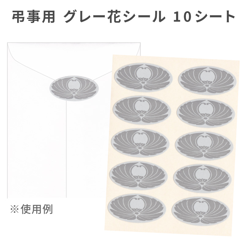 弔事用 花シール グレー 10シート 封緘や挨拶状カードの固定に
