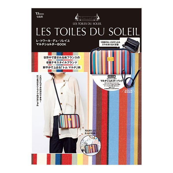 レ・トワール・デュ・ソレイユの「ムック本」が宝島社から発売!ブランドの歴史から、まだ日本未公開のフランス製品までをご紹介した充実の16ページ。特別付録は人気の「トムマルチ柄」を施した「マルチショルダー」です。機能的なポケットが複数ついており、スマートフォンもラクラク入ります。さらに、ショルダーテープが取り外しできるので、整理収納できる「マルチケース」としても利用可能!色鮮やかなストライプ柄でお出かけがぐっと楽しくなること間違いなし。