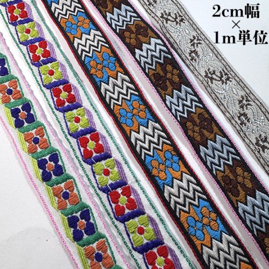 2cm幅 細幅手芸用テープ フラワーリボン 北欧風レトロ柄チロルテープ チロリアンテープ 花柄刺繍テープリボン 営業日即日発送【ハロウィン飾りデコレーション】