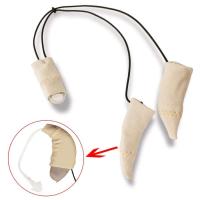 補聴器本体に布カバーを通し、クリップをシャツの襟などに留めます。