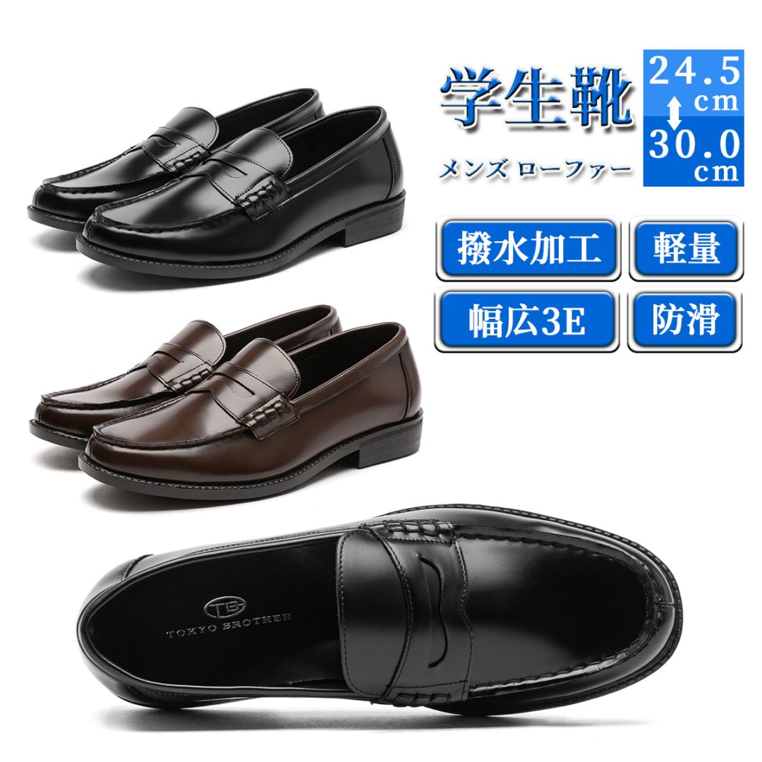 [TOKYO BROTHER] 東京ブラザー 学生靴 メンズ ローファー 軽量 履き心地 中敷 クッション性 防滑 撥水加工 幅広 EEE 通勤 通学 TB007