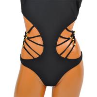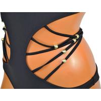 モノキニ水着(水着ワンピース)。紐にゴールド色の飾りビーズを施して更に注目度