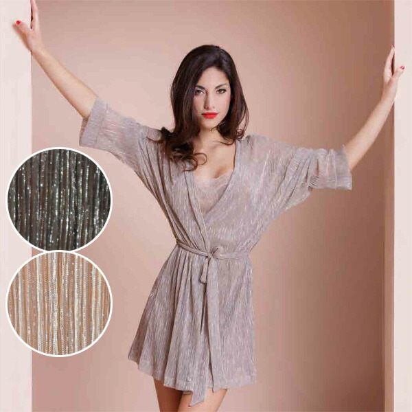 イタリアインポートランジェリー LOVE AND BRA 39052 ラメキモノローブ(ナイトガウン) カラー:ベージュ、黒プリーツ加工にラメをあしらったキラキラシースルー素材