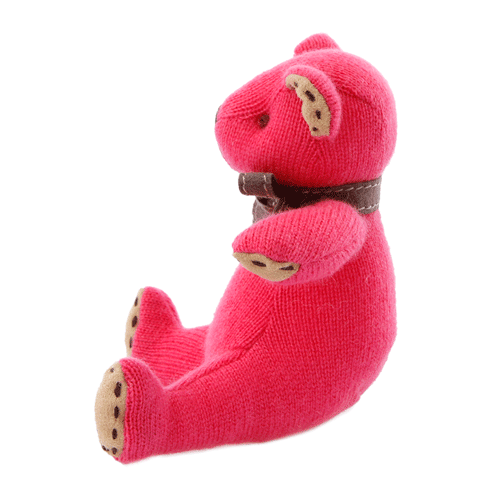 名入れ刺しゅうで、世界にひとつのカシミヤ・テディベア。ホットピンク色のフューシャ・ベビーベア【15cm】