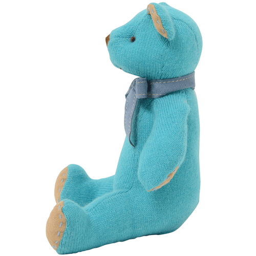 名入れ刺しゅうで、世界にひとつのカシミヤ・テディベア。孔雀グリーン色のピーコック・キッドベア【24cm】