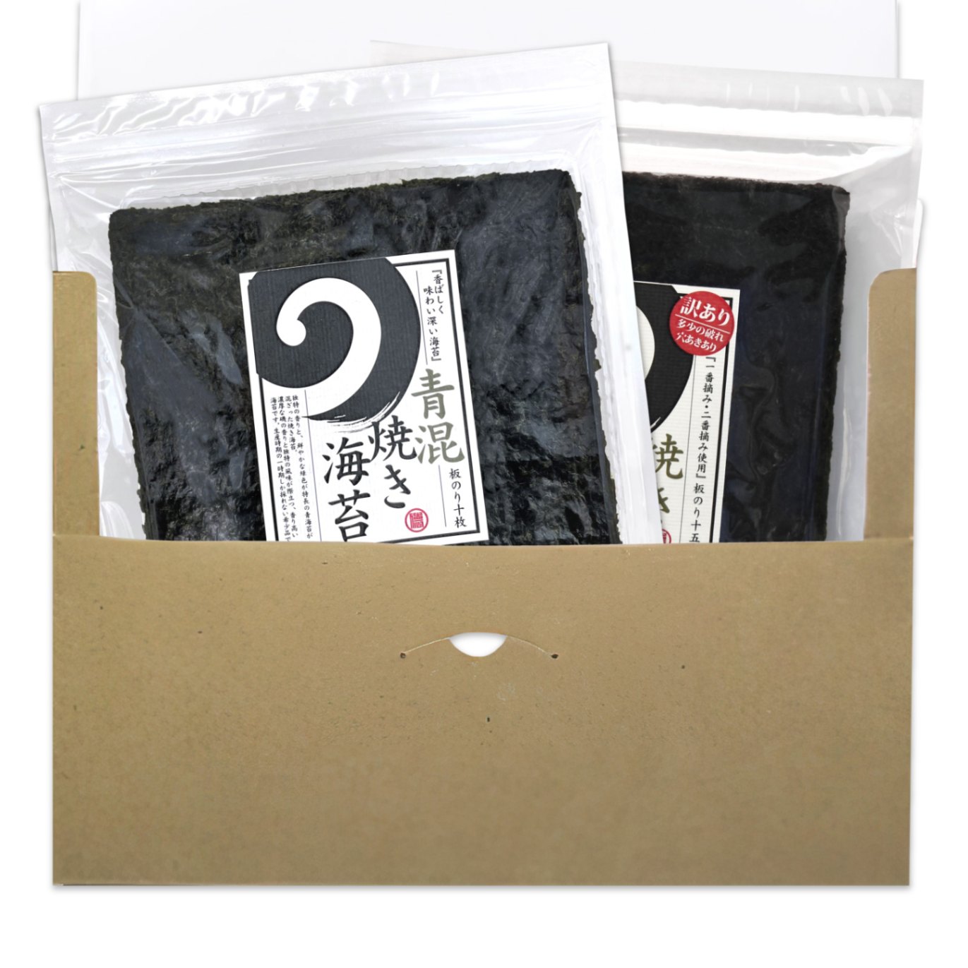 | 内容量焼のり10枚、焼のり15枚(混焼) 海苔の甘みと磯の香りが絶品!幻の「混のり」! × 小さな折れ、破れ、縮み、小穴などが理由ではねられた(取り除かれた)「上級海苔」! それぞれに特徴がはっきりと違うおすすめの焼きのりを 食べ比べてみてください! 「混のり」オンラインショップ販売開始にともない お得なお試し価格での食べ比べセットの発売開始です! 青混焼のり10枚入 上はねだし焼のり15枚入 ~~~~~~~~~~~~~~~~~~~~~~~~~~~~~~~~~~~~~~~~~~~~~ “混のり”とは青のりが混ざった海苔のことです。 全国での生産量はわずか0.5%と超希少! 一部では「幻(まぼろし)の海苔」とも呼ばれる“混のり”をその道40年のベテランが 香りにこだわり焼き上げました。 根強いファンを持つ”混のり” お醤油との相性が抜群に良く、混のりに温かいご飯を乗せ、 醤油を回しかけくるりと巻き、熱々をかぶりつきます! 辺りに香ばしい香りがたち、なんともいわれぬ美味しさです。 ~~~~~~~~~~~~~~~~~~~~~~~~~~~~~~~~~~~~~~~~~~~~~ ”上はね出し焼き海苔” オンラインショップ売上上位の人気商品! 小さな折れ、破れ、縮み、小穴などが理由ではねられた(取り除かれた)「上級海苔」! 高級海苔でも加工工程の段階で、破れたり、かけが生じた物は「きずのり」 と言われ、選別外品となりますが、海苔の風味や食感は変わらず、 不揃いですが柔らかく溶けるような口当たりで、芳醇な風味の焼き海苔です。 ~~~~~~~~~~~~~~~~~~~~~~~~~~~~~~~~~~~~~~~~~~~~~ 「焼海苔」にも色々な等級や特長があります。 是非食べ比べてみて下さい。 こちらのお試しセットはネコポスでの発送となります。 代金引換、配達日時の指定はご利用できませんのでご注意ください。 通常配送・同梱をご希望の方はこちらからご注文ください |
