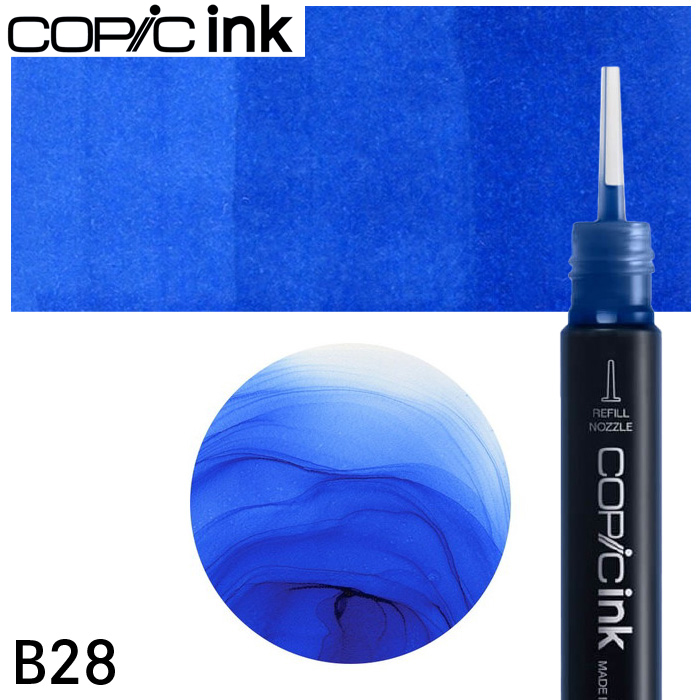 | Royal Blue ロイヤル・ブルー 鮮やかで深みのある藍色。英国王室の色にも指定されている。和名は花紺青(はなこんじょう)、藤紫(ふじむらさき)。 コピックシリーズに共通して使用できる補充用のインクです。 手軽に補充ができ、コピックを繰り返しお使いいただけます。 空ボトルを利用してオリジナルのインクを調合して楽しむことも可能です。 全358色 ・インク量が見やすいボトル 透明度の高い素材の容器で、インク量の残量がわかりやすくなっています。 ・スピーディーなインク補充 コピックのブロード側のニブを一度外し、コピックインクのノズルを直接挿すことで手軽にインク補充を行えます。 ・塗り色に近いキャップ色 実際に塗った色に近いカラーマーク(キャップ)となっています。 ※表示されている色はモニター環境等によって左右されますので、実際の色とは異なります。目安としてご覧ください。 ◆本数 1本 ◆色番 B28 ◆成分 アルコール染料インク ◆内容量 12ml ◆補充量の目安 スケッチ:1回につき約1.8ml(約7回) チャオ:1回につき約1.4ml(約9回) クラシック:1回につき約2.5ml(約5回) ワイド:1回につき約3.5ml(約3.5回) |